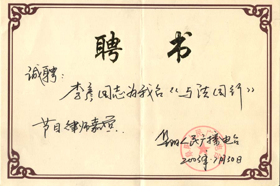 歡迎光臨本網(wǎng)站,我會以極大的熱情,為您提供優(yōu)質(zhì)、高效的法律服務(wù)。我的網(wǎng)址://LIYAN.SONGDING.NET