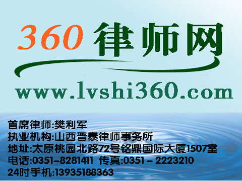 山西晉泰律師事務所是經山西省司法廳批準成立的合伙制律師事務所,位于太原市桃園北路72號,在銘鼎國際大廈15層購置了獨立的辦公場所,建立了客戶網絡檔案ERP服務管理系統。本所由多名具有數十年訴訟和具有多年大型企業非訴法律服務豐富經驗的資深專業律師組成,是一個有朝氣蓬勃且富有團結協作精神的綜合性律師事務所。在硬、軟件方面均能滿足大中型公司、企業的法律服務需要求。 本所遵循“誠信第一、法治為本、客戶利益至上”的服務理念。以事實為依據,以法律為準繩,嚴格的規章制度為保障,深厚的理論知識為基礎,嫻熟的職業技能為技巧,規范的操作程序為步驟,廣泛的社會關系為輔助渠道。集聚團隊的智慧,迭加社會資源,提供專家團隊協作式的法律服務,致力于打造三晉大地法律服務業的楷模。 聯系人:樊律師 電話:13935188363 網址:WWW.LVSHI360.COM 律師網 提供專家式網絡法律服務,歡迎登錄學習,交流。
