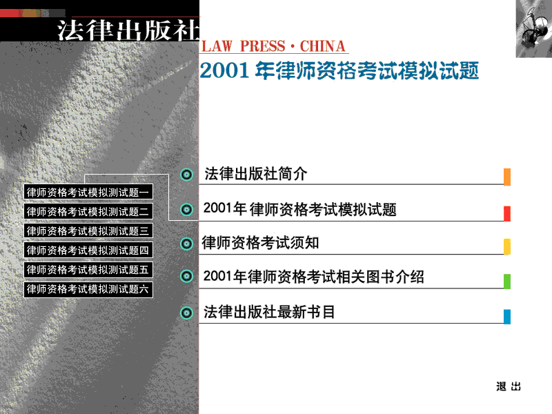 2001年全國律師資格考試指定用書全套8本由法律出版社和中國政法大學出版社出版。